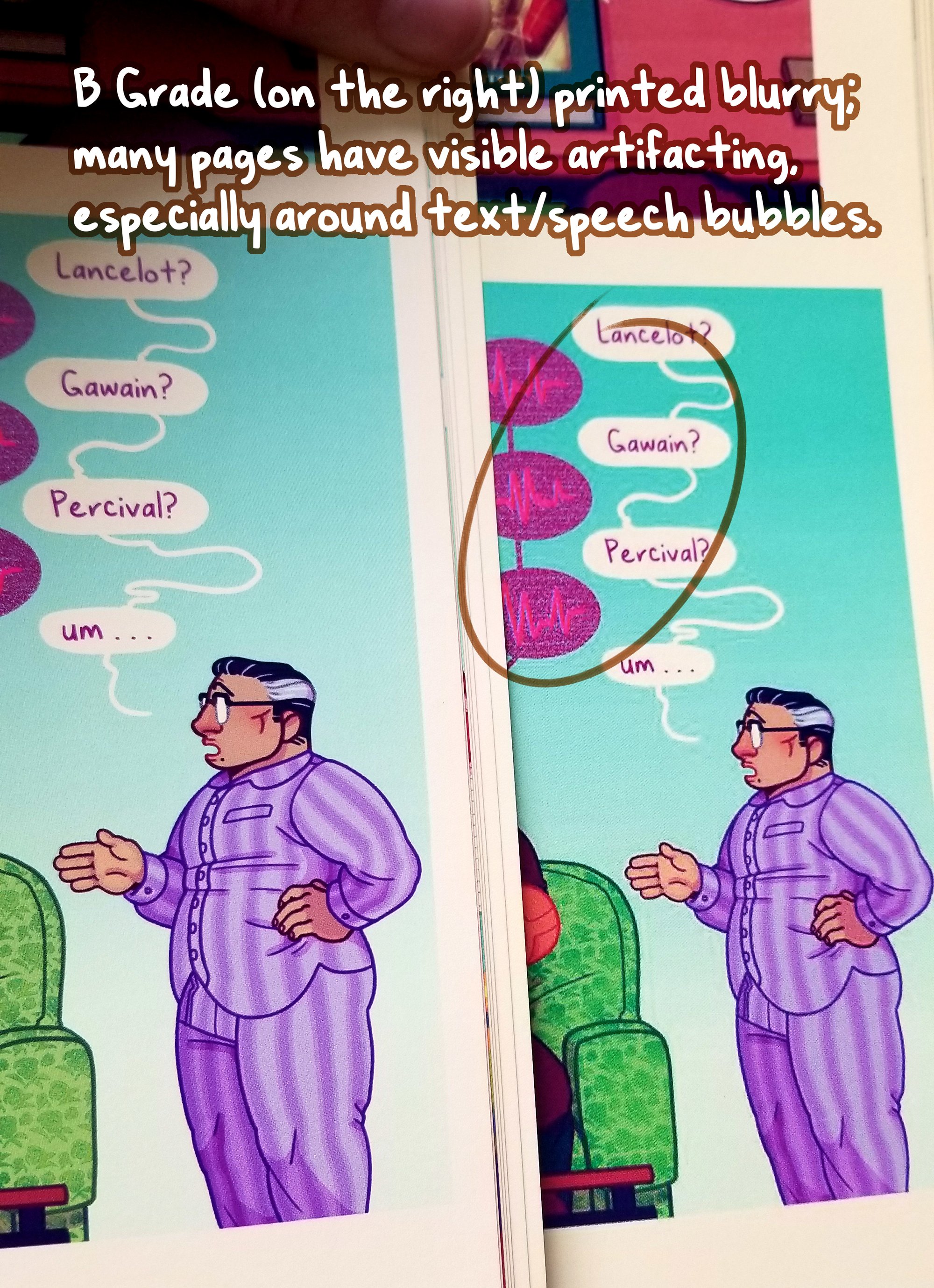 Due to a manufacturing mistake, I have both A and B grade comics to offer. The B grade was printed at a lower resolution, so the images inside are a bit blurry with some jagged edges. See the comparison photo on this listing for an example!